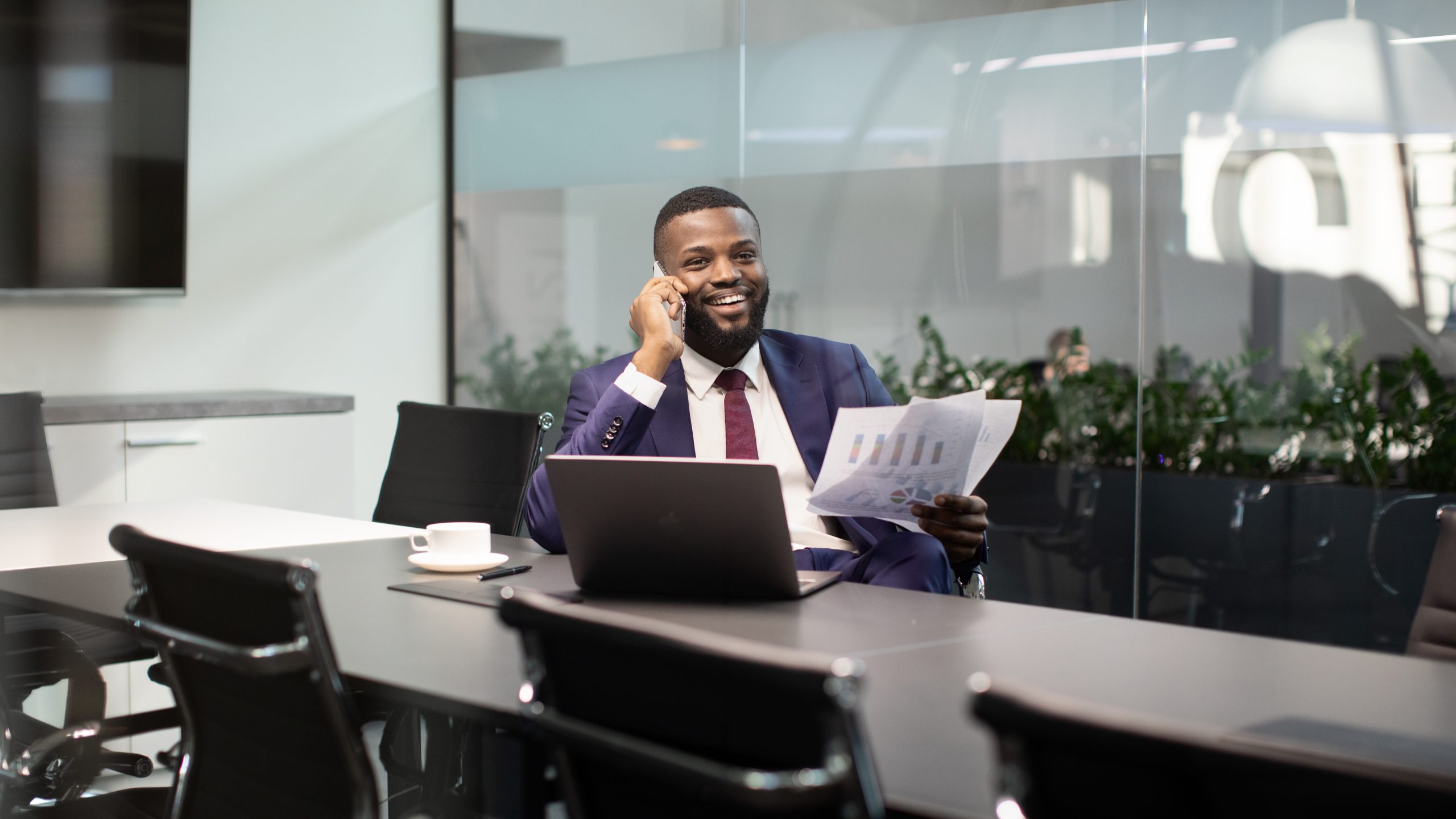 Smiling black boss having phone conversation at office, holding documents Published March 5, 2023 at 2560 × 1440 in Smiling black boss having phone conversation at office, holding documents Smiling african american man in suit businessman having phone conversation with his assistant or business partner, sitting at table in front of laptop, holding documents, panorama with copy space ← Previous Next →